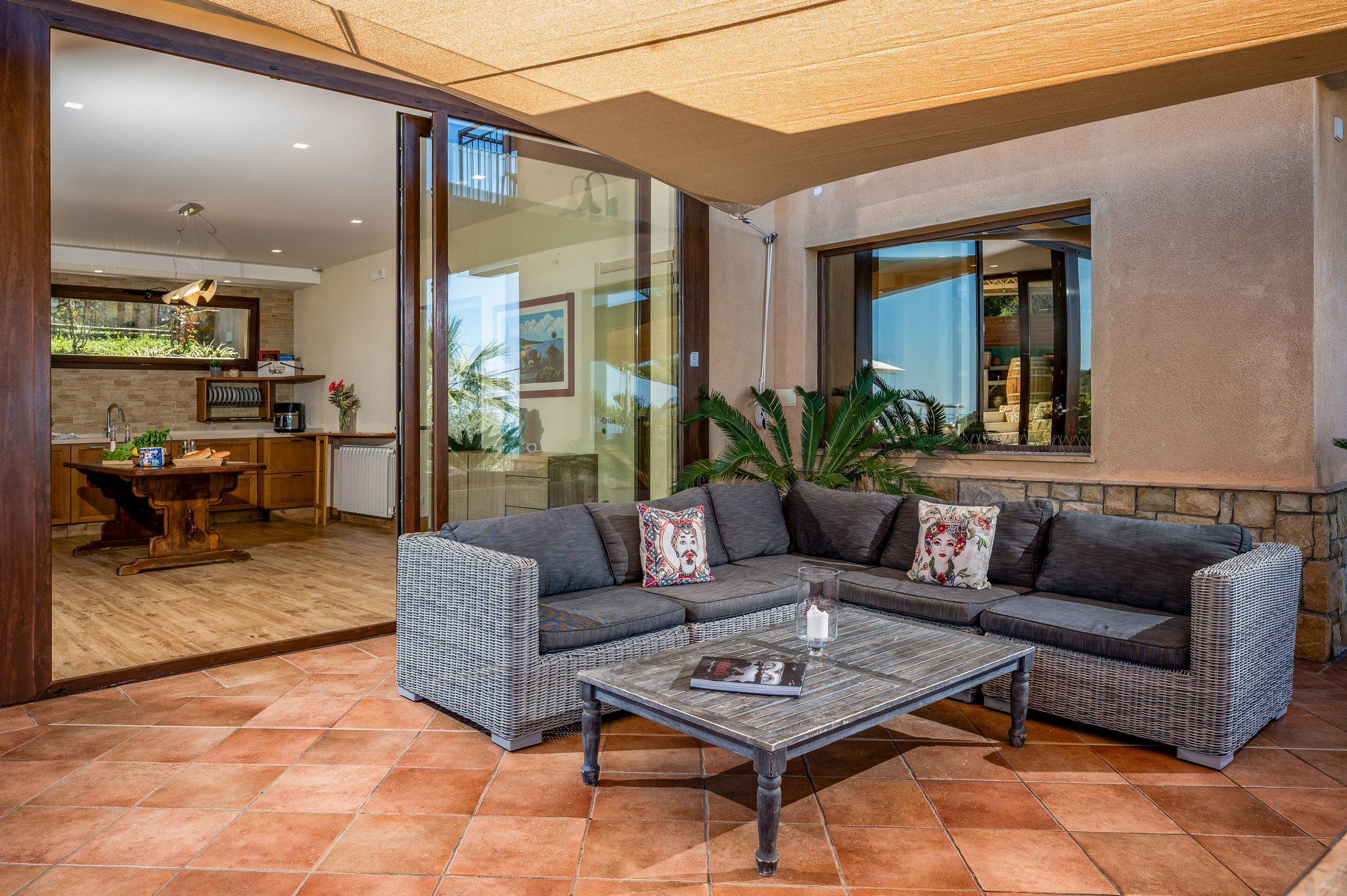 Villa Provenza has long been a favorite for family holidays, offering an ideal setting for all generations. Surrounded by lush palm trees and gardens with stunning sea views, the villa boasts extensive terraces and a large pool, ensuring a memorable stay. The spacious interiors, adorned with vibrant walls and coordinating furnishings, reflect a charming Sicilian style.