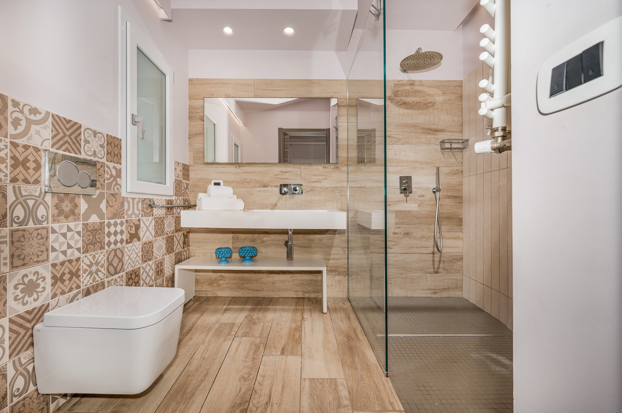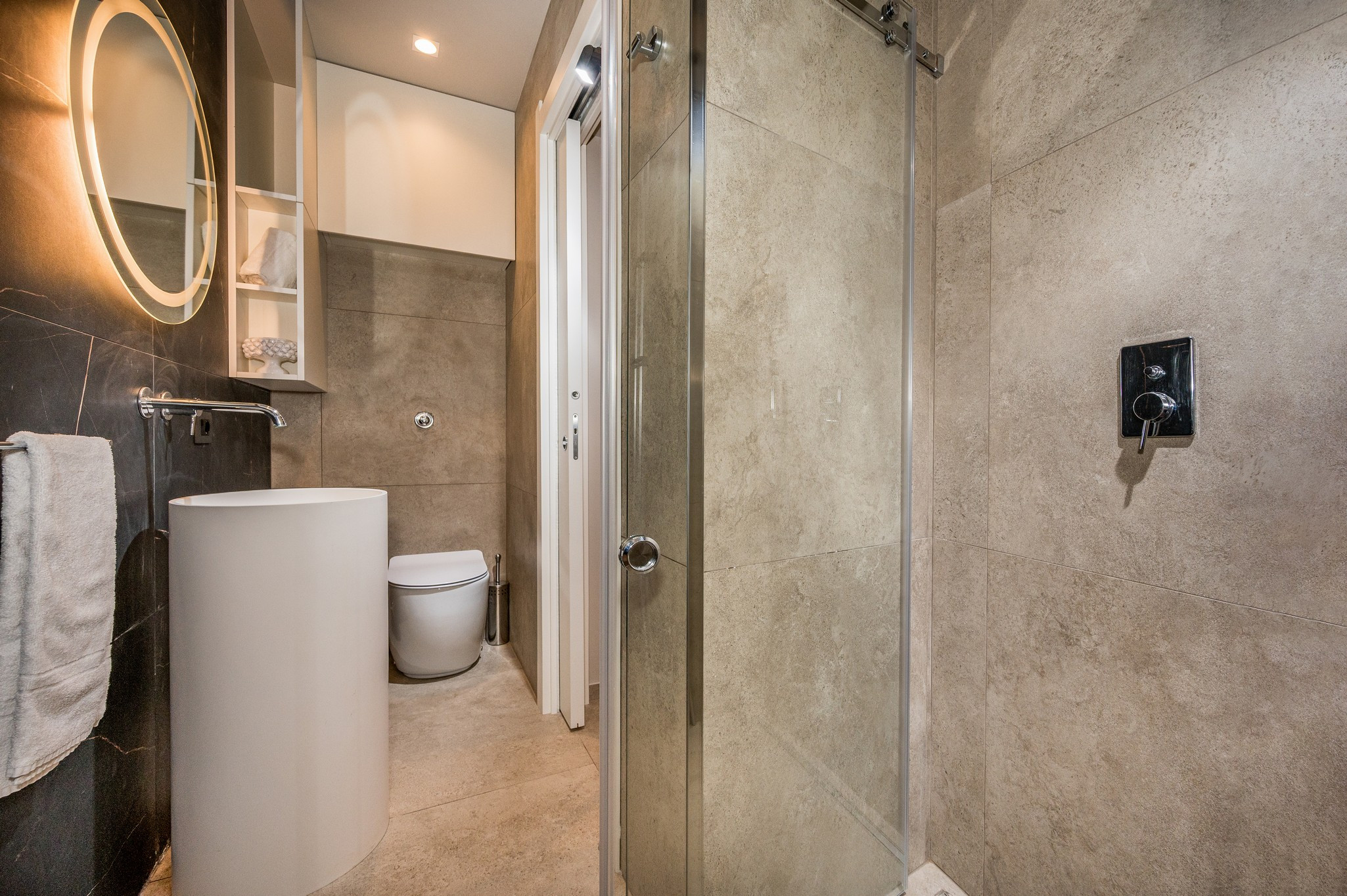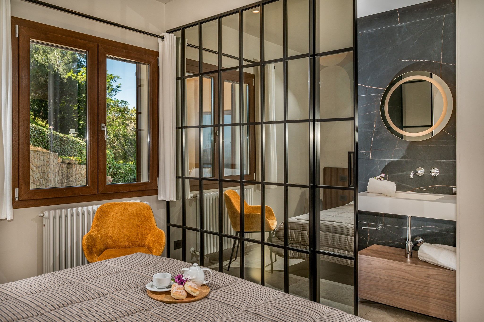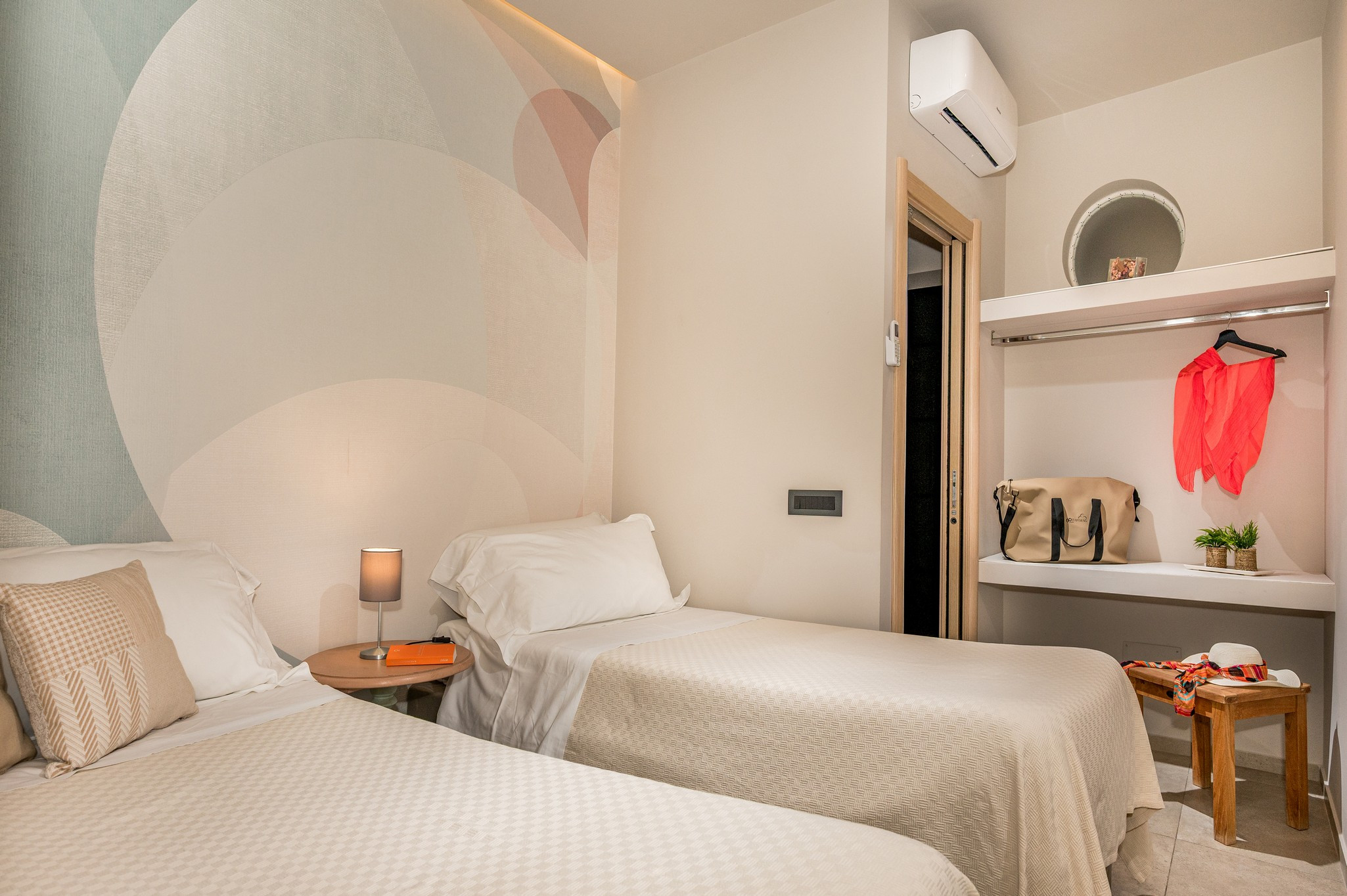 An exterior staircase leads to the newly renovated first floor, offering an airy living space that opens onto a large terrace with panoramic views of the pool, coastline, and Cefalù. This section of the villa has three double bedrooms, two of which feature mezzanines with two single beds, perfect for teenagers. Each bedroom has an en-suite bathroom, and all three double beds can be converted to twins upon request.