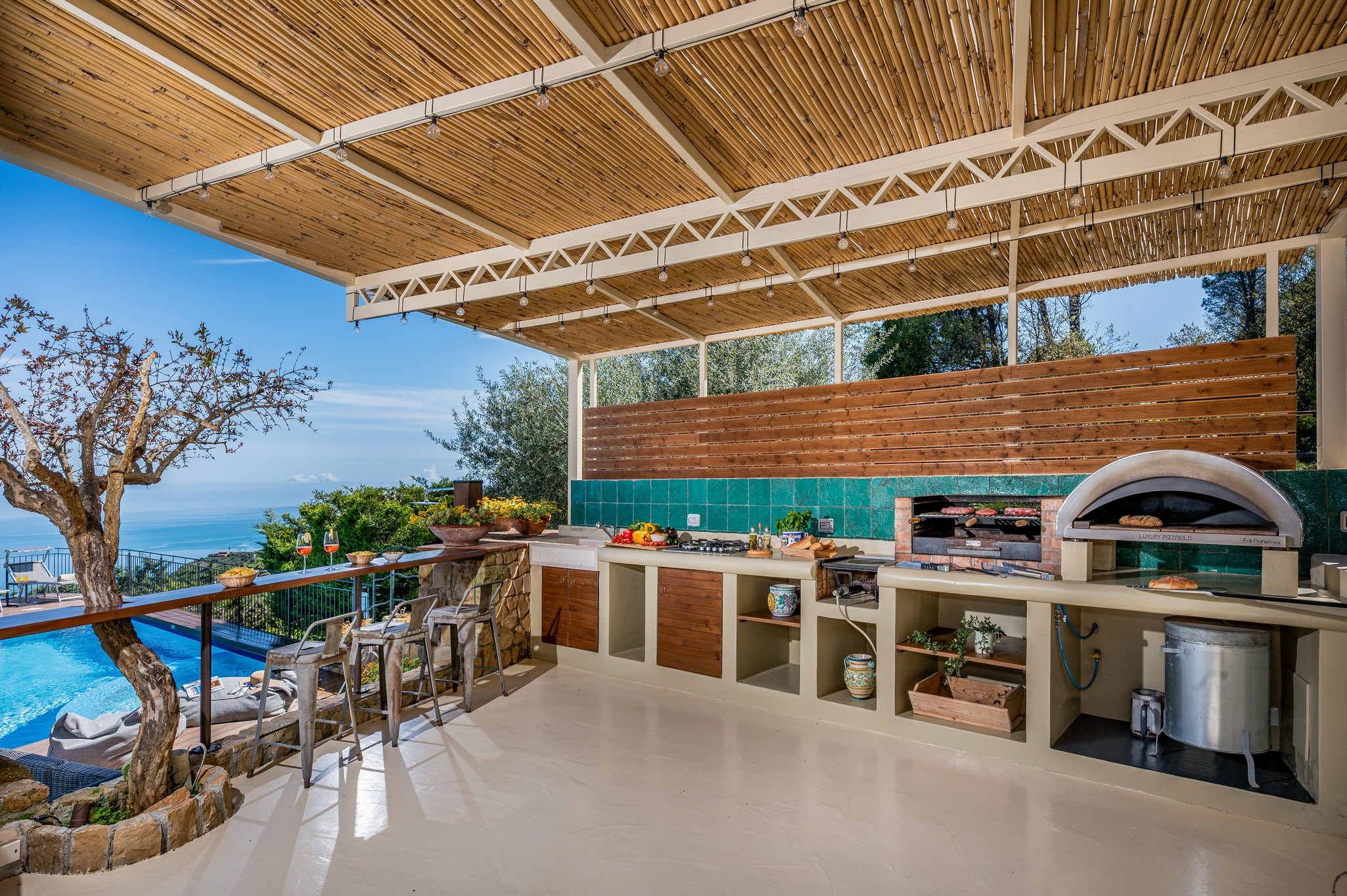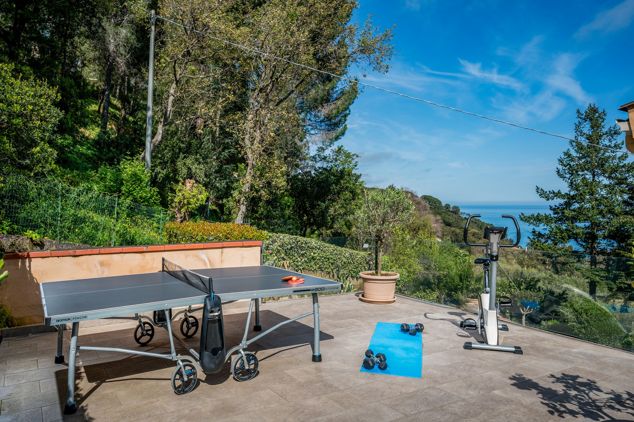 Villa Provenza is set amidst palm trees and gardens with beautiful sea views, complemented by extensive terraces perfect for dining and relaxation. The large pool is ideal for cooling off, and there’s also a children’s playground with ping-pong and a barbecue area for outdoor meals. Please note that photos are taken in spring, so the blooming flowers and garden colours may vary at the time of your stay.