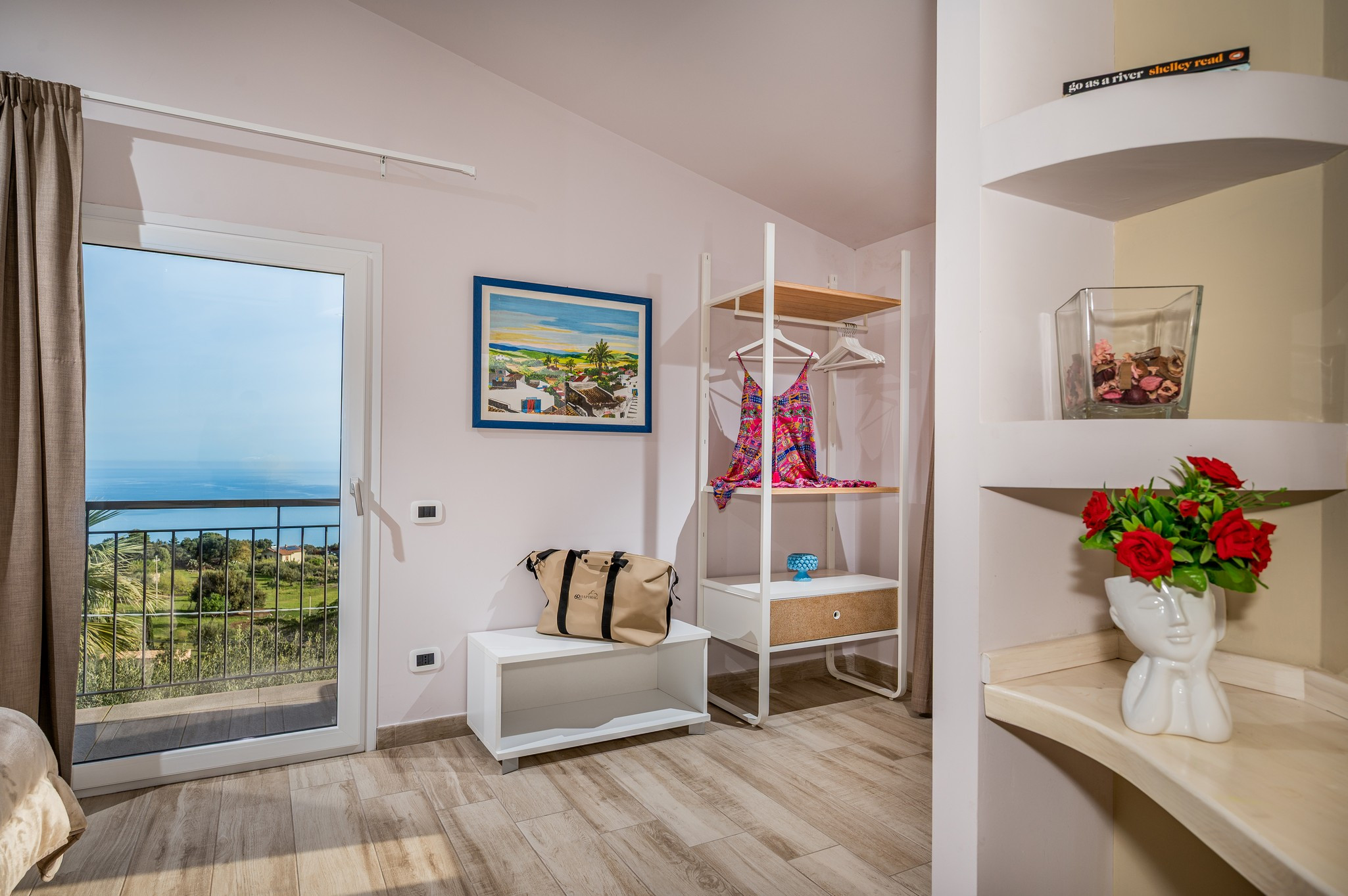 Villa Provenza is a popular choice for family holidays, offering an ideal setting for all generations. Surrounded by lush palm trees and gardens, with stunning sea views, the villa features extensive terraces and a large pool, ensuring a memorable stay. Inside, the spacious interiors are decorated with vibrant walls and coordinating furnishings that reflect the charm of Sicilian style.