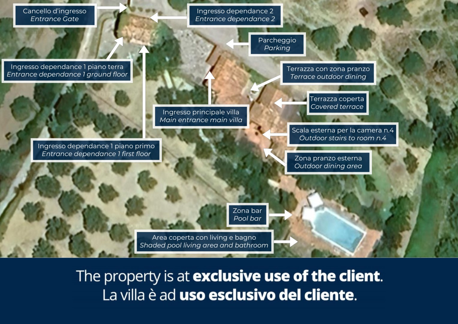 Please notice that photos are taken in spring, therefore flower blossoming, and the colours of the gardens' grass could be different at the moment of your arrival at the villa.