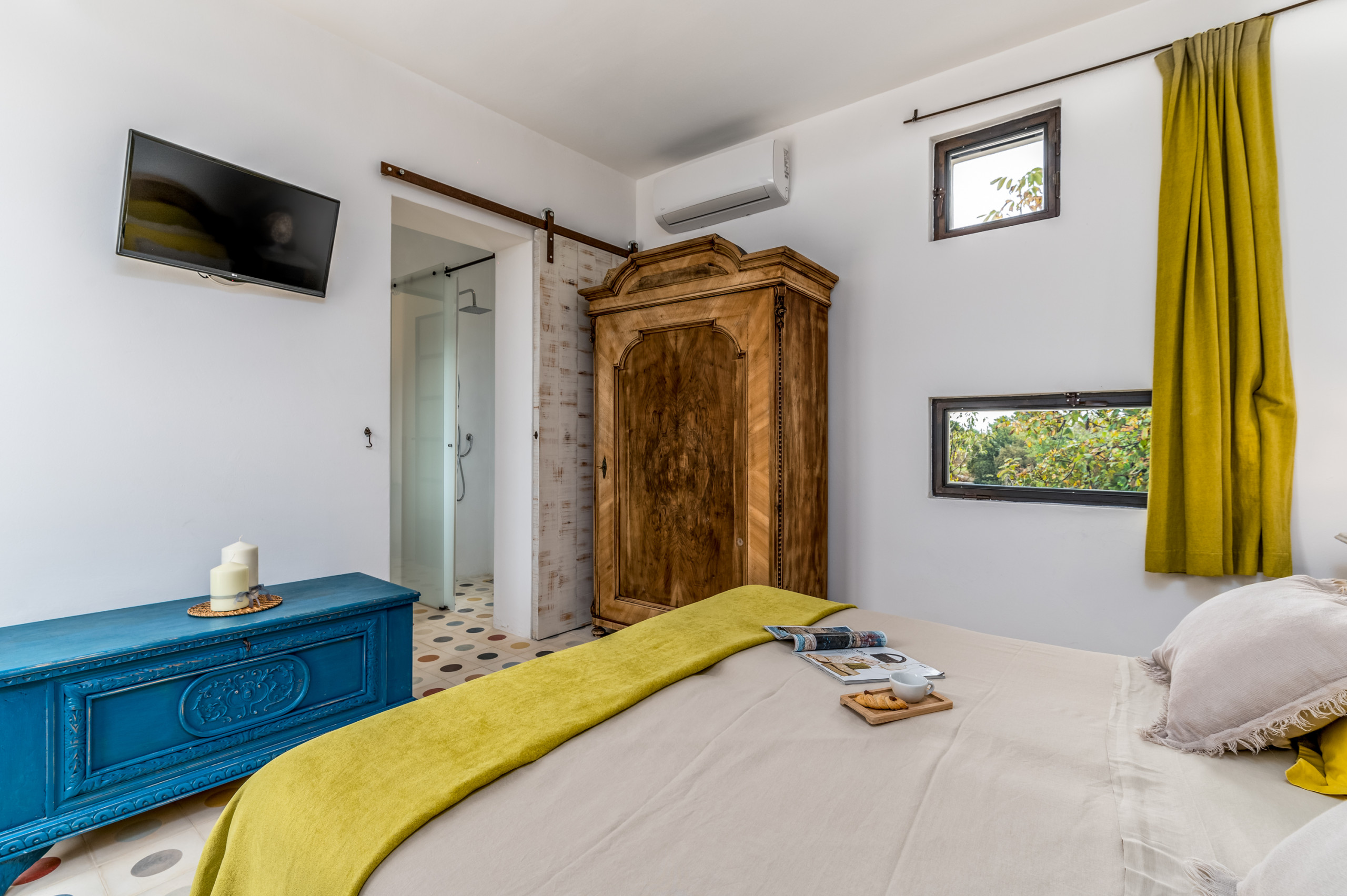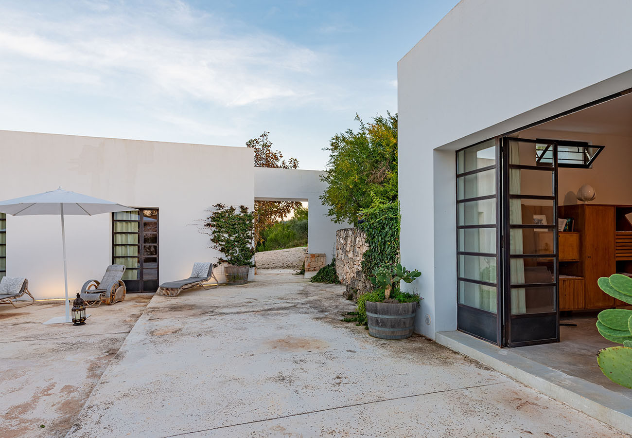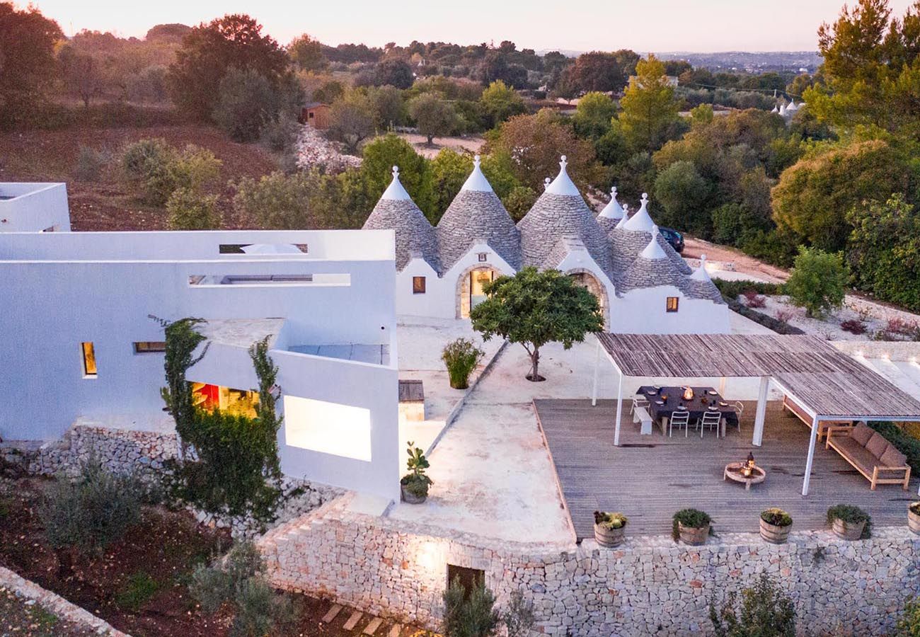 Trullo Santa Pazienza is located in the fascinating countryside of Martina Franca in the Itria Valley, a short distance from the renowned towns of Cisternino, Grottaglie and Ceglie Messapica. Thanks to the restoration of the old trulli, this rural residence has been transformed into a magical place where the past, still alive in its typical structures and romantic appeal, is mixed with the modern comfort of the austere lines of the new appurtenances, creating a place worthy of a holiday of pure energetic refreshment. The property, composed of three separate bodies, guarantees privacy for groups of friends or families, while retaining the character of a house with shared spaces. The trullo offers a cosy atmosphere, with minimalist interiors and bright resin floors, contrasting with the essential furnishings of the kitchen-dining room. The modern lamia, the main nucleus of the house, is enriched by lively polka-dotted cement floors, offering a combination of antique and eclectic style to the rooms that compose it, to which the outdoor dining area adds further character. Separate but adjoining, the third part of the house is a lovely lamia with a large French window leading directly to the living room, equipped with a sofa bed. In the charming garden that surrounds the three residential bodies, the living and dining areas join the splendid swimming pool, completing and embellishing the entire property. Trullo Santa Pazienza is surrounded by numerous places of tourist interest as it is located about 10 km from Cisternino, 13 km from Ceglie Messapica, 20 km from the well-known towns of Grottaglie and Alberobello, in a strategic point between historical places and renowned locations where you will find food and wine specialities, artistic treasures and, just half an hour away. beautiful sandy beaches.