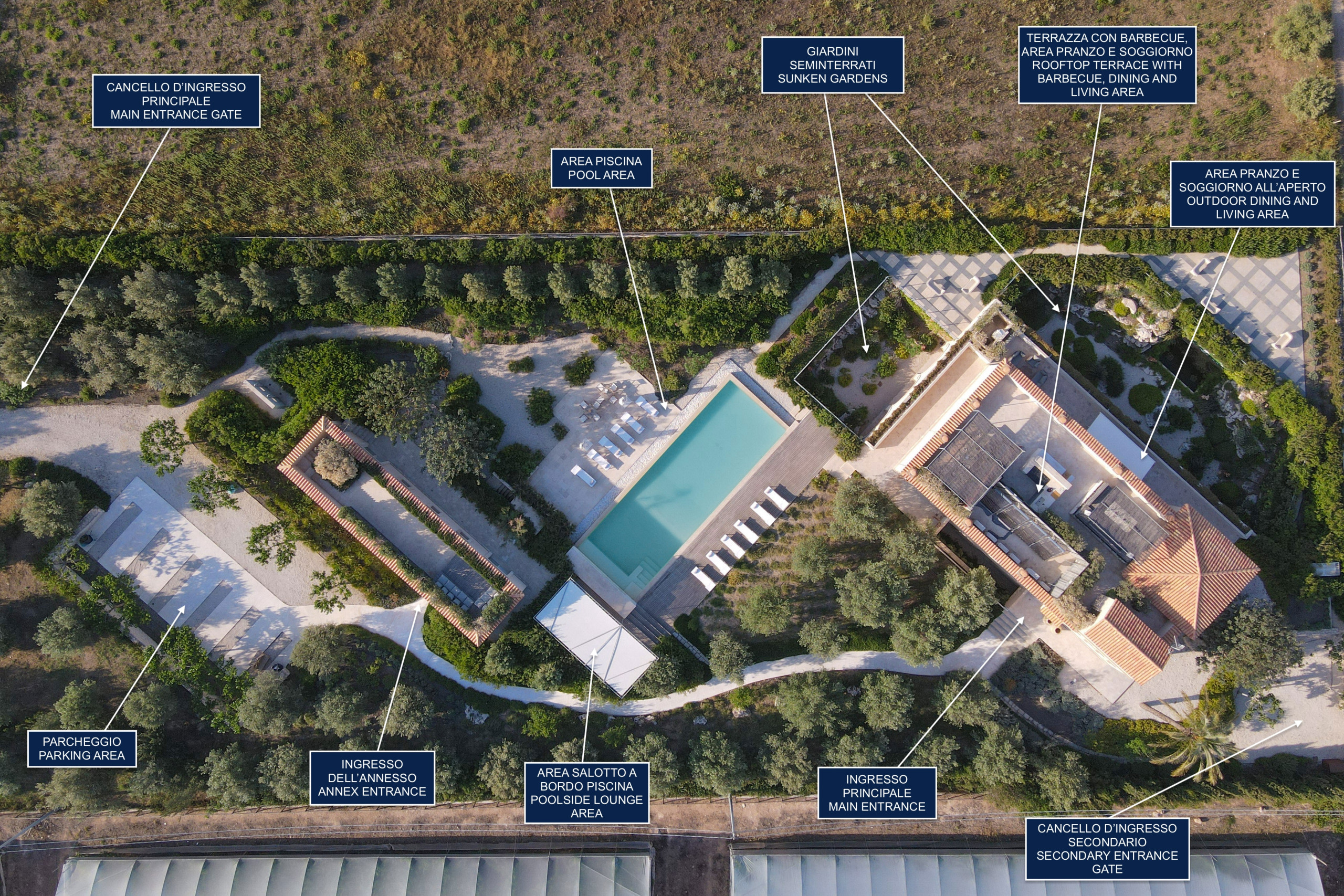The Pool House: a separate building near the pool area is totally self-contained. It includes a fully equipped kitchen, dining area, lounge with an extra bed if needed, a double bedroom and bathroom. Outdoor it has a terrace on the ground floor and a beautiful rooftop terrace.